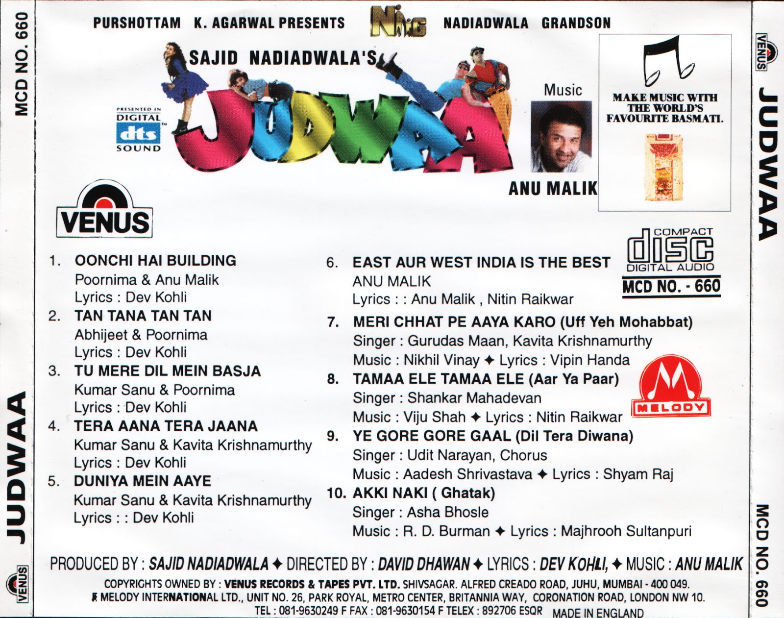 Judwaa 1997 Songs / Tere aana tera jaana kumar sanu, kavita krishnamurthy. Judwaa 1997 Songs : Tu mere dil mein bas ja music director: