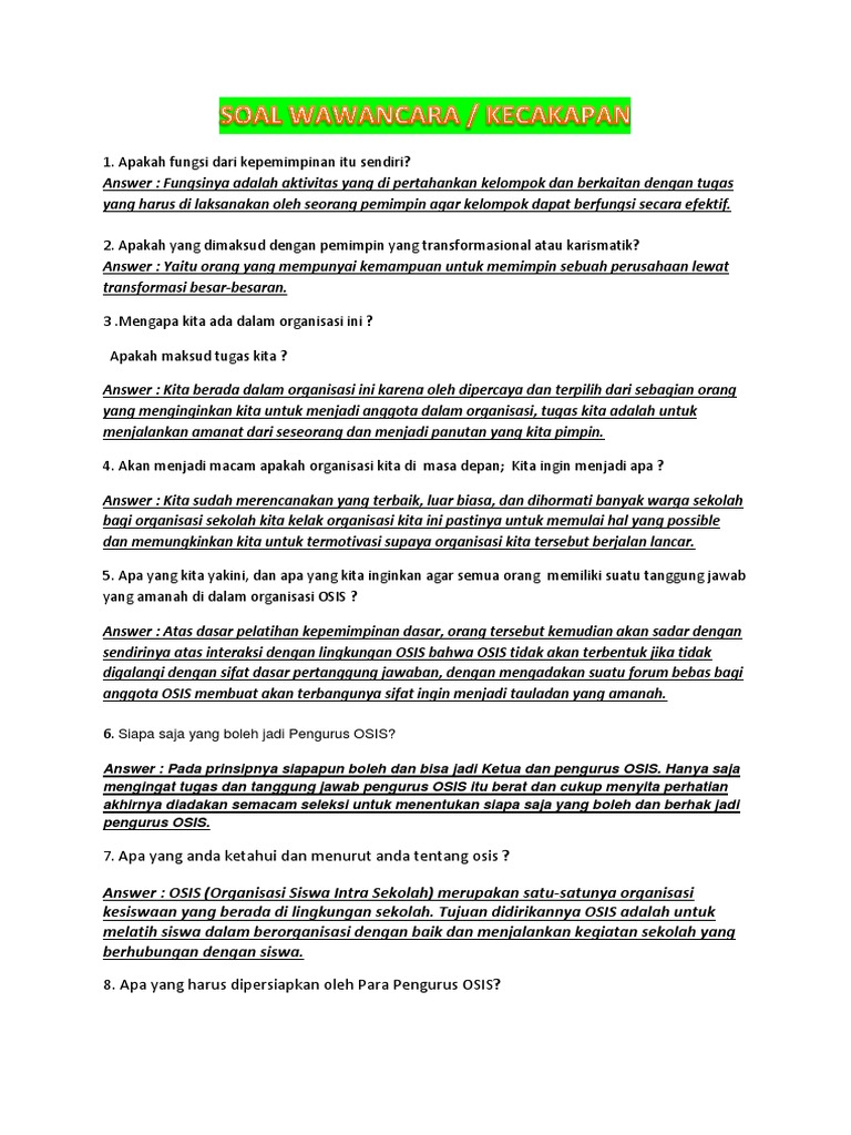 Soal Dan Jawaban Seleksi Osis Sma Ilmusosial Id - Berikut adalah beberapa contoh pertanyaan wawancara kerja dan jawabannya.