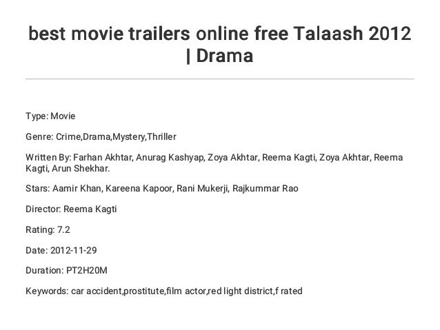 Talaash 2012 Full Movie Watch Online - November 30, 2012 (usa) director: Talaash 2012 Full Movie Watch Online : The mystery connects these people in a way, that ultimately changes.